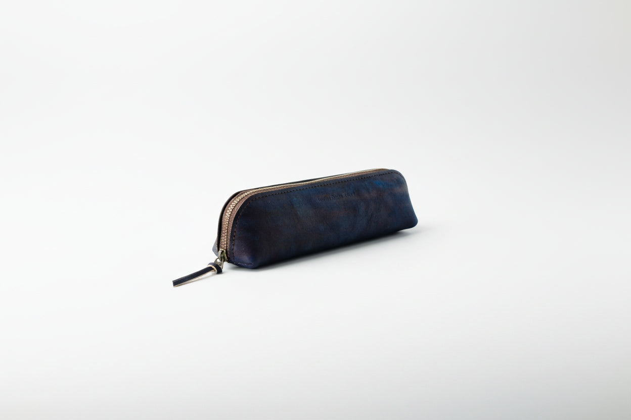 Each piece of cowhide is meticulously hand-dyed with natural indigo. The deep indigo evokes the mysterious depths of the ocean, while the marbled patterns resemble the ever-changing sky. We invite you to hold it in your hands and feel the exquisite texture for yourself.