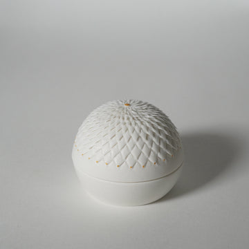 This bonbonniere was created using a unique technique of cutting the pottery with scissors before firing.