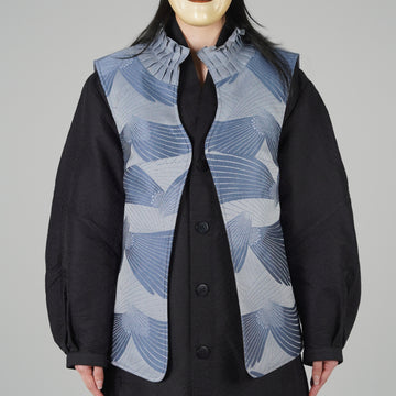 OMIGOROMO is a type of costume featured in jidai-mono, a category of Kabuki plays that depict stories of samurai, aristocrats, and other characters far removed from everyday life. It is characterized by a ruffled fabric that encircles the collar and a standing collar detail at the back of the neck.